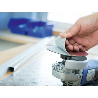 Der LUX-TOOLS Haftschleifteller eignet sich hervorragend zur Aufnahme von Schleifscheiben oder Polierhauben mit Ø 150 mm. Er ist mit einer M14-Gewindeaufnahme für Winkelschleifer ausgestattet und sorgt durch seinen Klettaufnahmeteller für einen stabilen Halt.