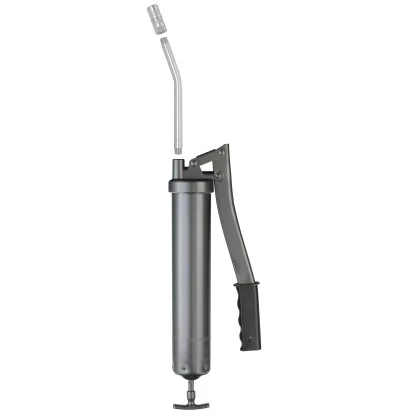 Die LUX-TOOLS Handhebel-Fettpresse eignet sich zum Nachfüllen und der Applikation von Schmierfett an Maschinen oder mechanischen Werkzeugen. Sie kann sowohl mit Kartuschen mit je 400 g oder 500 g losem Fett verwendet werden. Der abrutschsichere Handgriff und das gebogene Düsenrohr ermöglichen ein sicheres Arbeiten und das Beschmieren von schwer erreichbaren Stellen. Der Fettpressenkopf besteht aus hochwertigem Zinkdruckguss. Das Schmierfett wird dank des separaten Entlüftungsventils gleichmäßig und mit konstantem Arbeitsdruck verteilt.