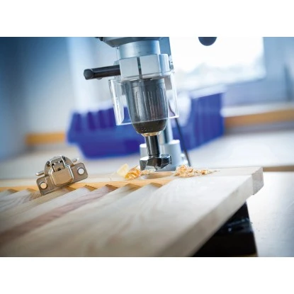 Der Scharnierlochbohrer bietet die idealen Voraussetzungen für exakte Holzbearbeitung. Nutzen Sie ihn, um in Schranktüren, Regalverbindungen, Klapptischen und weiteren Werkstücken die Basis für das Einsetzen der Scharniere zu schaffen. Das Besondere ist dabei das Zusammenspiel aus praktischem Handling und nützlichen Eigenschaften. Den Holzbohrer können Sie als Standardzubehör auf allen handelsüblichen Bohrmaschinen verwenden. Sie können ihn mühelos, spielfrei und sicher in den Schaft der Maschine einsetzen und fixieren.