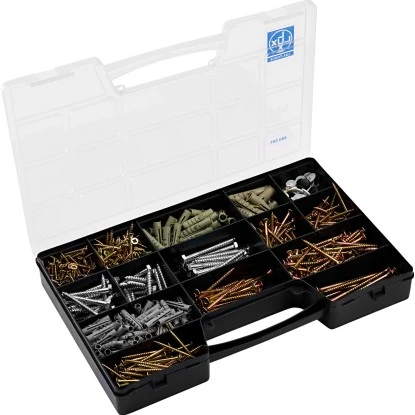 Das 620-teilige LUX-TOOLS Holzschraubensortiment beinhaltet die gebräuchlichsten Holzschrauben und die dazu passenden Dübel und Abdeckkappen. Das Set beinhaltet folgende Größen: