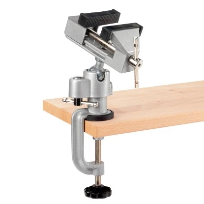 Der enthaltene Schraubstock dient dem Festhalten von Werkstücken beim Sägen, Schleifen, Feilen oder Schneiden. Seine Spannweite erlaubt es, Werkstücke bis zu einer Stärke von 50 mm aufzunehmen. Mittels des zweiten Aufsatzes, der Euro-Aufnahme, kann eine Bohrmaschine fixiert werden. Somit steht Ihnen ein nützliches Hilfsmittel zum präzisen Bohren zur Verfügung. Die Spannweite der Euro-Aufnahme beträgt 43 mm und eignet sich somit für handelsübliche Bohrmaschinen.