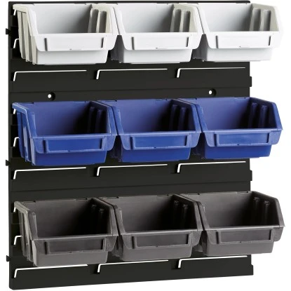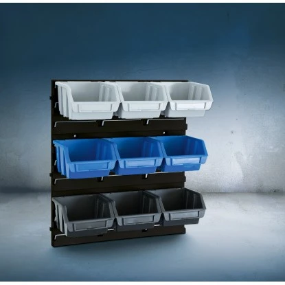 Das LUX-TOOLS Lagersichtboxen Set LSB-650 eignet sich zur Aufbewahrung von Kleinteilen in Ihrer Gargage, Keller und Werkstatt. Das enthaltene Wandpaneel ermöglicht Ihnen das Positionieren der Boxen auf 3 Ebenen. Somit entsteht auf kleinster Fläche viel Platz um Ordnung zu schaffen. Die Boxen sind zudem noch in sich stapelbar. Im Lieferumfang sind 1 x Wandpaneel (350 mm x 386 mm) und 9 x Boxen (Je 116 mm x 75 mm x 112 mm) enthalten.