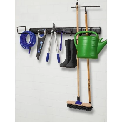 Das LUX-TOOLS Leisten- und Hakenset ist passend für das Wall-it System und besteht aus 9 Teilen. Eine Wandleiste und verschiedene Haken bieten Platz für Werkzeuge und andere Utensilien. Es ist hergestellt aus pulverbeschichtetem Metall.