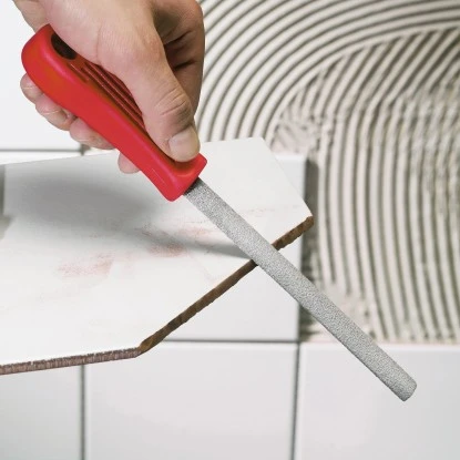Mithilfe einer Hartmetallfeile können Sie darüberhinaus auch Überstände am Bohrloch problemlos entfernen.