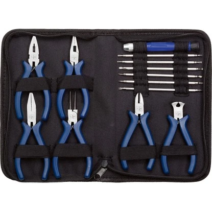 Der 14-teilige LUX-TOOLS Mechanikersatz Classic bietet Ihnen alles, was Sie für präzise Feinarbeiten benötigen. Die sechs Zangen und sechs Schraubendreher mit zwölf Profilen sind in einem hochwertigen Lederetui untergebracht, welches seinen Inhalt kompakt und sicher aufbewahrt.