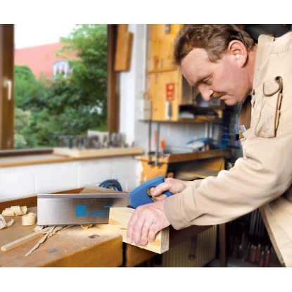 Die LUX-TOOLS Rückensäge hat eine Länge von 350 mm. Durch die feine Zahnung ist die Säge auch für den Einsatz in Schneidladen geeignet. Sie besitzt ein geschärftes, geschränktes und zahnspitzgehärtetes Blatt mit einer Stärke von 0,7 mm sowie 5 Zähnen pro Zentimeter.
