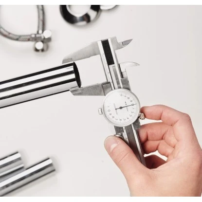 Die LUX-TOOLS Präzisions Uhr-Schieblehre mit Feinjustierung (Daumenrädchen) und Feststellschraube misst exakt die gewünschten Abmaße.