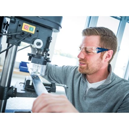 Mit der besten optischen Klasse 1 ist der Augenschutz für den Dauereinsatz mit besonders hohen Anforderungen an die Sehleistung zugelassen. Die Sichtscheibe ist kratzbeständig und genauso wie die Fassung für Stöße mit geringer Energie geeignet. Ihre Bügel sind neigungsverstellbar.