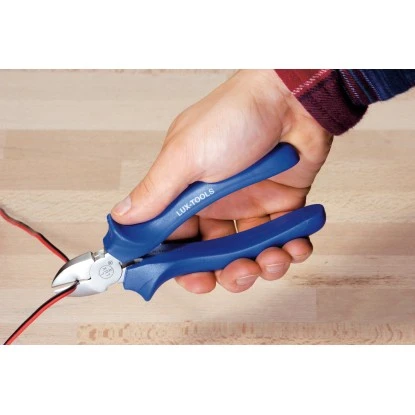 Der LUX-TOOLS Seitenschneider 160 mm ist aus Werkzeugstahl geschmiedet, mit verchromtem Oberflächenfinish und Kunststoffgriffen. Die Länge beträgt 160 mm.