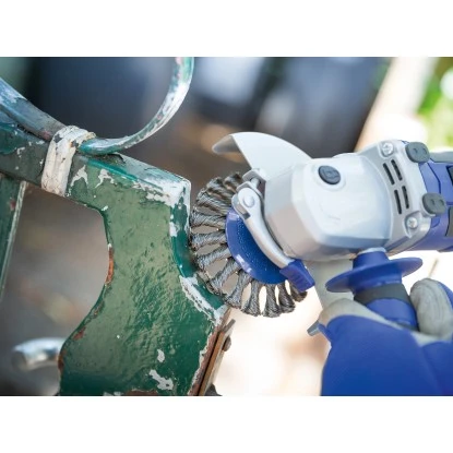Die LUX-TOOLS Scheibenbürste mit Ø 100 mm in gezopfter Ausführung eignet sich ideal zum Entrosten, Säubern und Entlacken von Metall und Stahl. Die M14 Aufnahme ist passend für handelsübliche Winkelschleifer.
