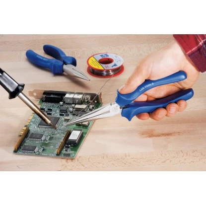Die LUX-TOOLS Telefonzange 200 mm ist aus Werkzeugstahl geschmiedet, mit poliertem Oberflächenfinish und Kunststoffgriffen. Die Länge beträgt 200 mm.