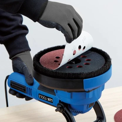 Der LUX Trockenbauschleifer kommt zum Glätten und Abtragen von Oberflächen im Trockenbau zum Einsatz. Auch zum Bearbeiten von Böden und Wänden können Sie das Gerät verwenden. Es verfügt über eine hohe Leistung von 1.050 W bei einer Leerlaufdrehzahl von bis zu 1.900/min (Umdrehungen). Dabei lässt sich die Drehzahl stufenlos von 410/min (Umdrehungen) – 1900/min (Umdrehungen) regulieren, sodass Sie den Schleifer optimal an Material und Arbeitsvorhaben anpassen können. Für saubere Schleifvorgänge besitzt er eine integrierte, starke Saugabsaugung.