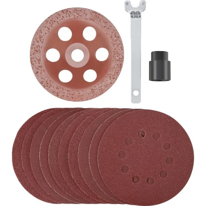 LUX Trockenbauschleifer, 1 m Saugschlauch, 1 Staubbeutel, 1 Adapter, 10x Schleifpapier (2×40/80/120),1 Hartmetall Schleifkopf, 1 Zweiloch-Montagespannweit