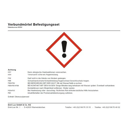Schreibe die erste Rezension für „LUX Verbundmörtel Befestigungsset“ Antwort abbrechen