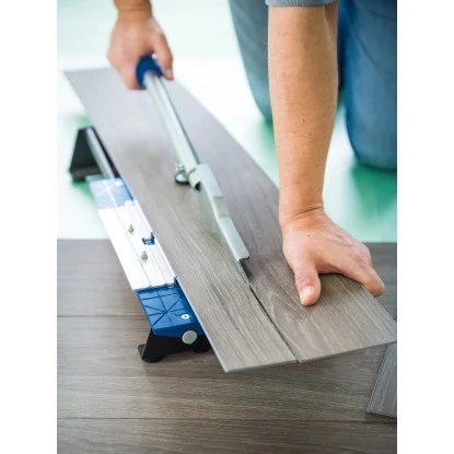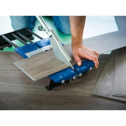 Der LUX-TOOLS Vinylschneider Comfort ist ein optimales Hilfsmittel zum Verlegen von neuen Bodenbelägen und kann für Vinylpaneele und -fliesen bis zu einer Stärke von 4 mm, sowie einer Breite von 190 mm verwendet werden. Dank der integrierten Aluminium-Schneidleisten sind perfekte Schnittergebnisse gewährleistet. Sowohl präzise 90° – Schnitte als auch Winkel- und Längsschnitte sind möglich. Zusätzlich sorgt die sichere Fixierung des Werkstücks, dass eine spezielle Führung und Zahnung möglich ist. Der praktische Längsanschlag ist für breite Streifenzuschnitte von 50 mm geeignet. Auch selbstklebende Vinylpaneele können, durch die Anti-Haft-Klinge, leichtgängig gekürzt werden.