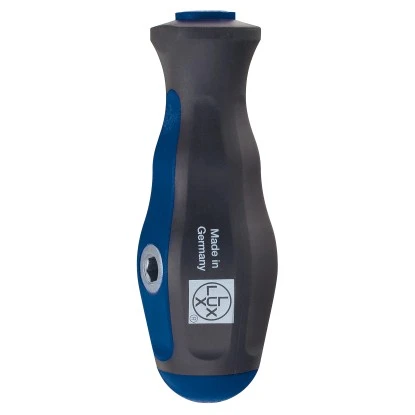 Der LUX-TOOLS Wechselklingen Satz mit Schraubendreher und T-Griff beinhaltet 13 Teile inkl. 12 Klingen mit 2 Antrieben. Der Griff besteht aus 2 Komponenten und der Griffkopf ist mit einem Abrollschutz ausgestattet.